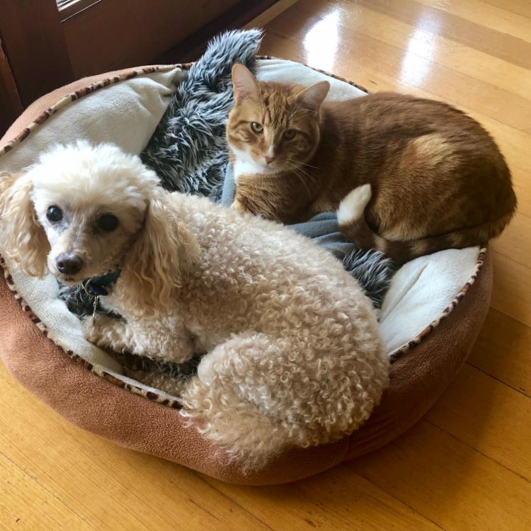 Pup Seymour needs to be walked twice a day (there’s a dog park across the road), and kitty Nelson just wants his litter tray to be scooped regularly.